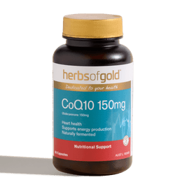 Add to Wish list Add to Cart Quick view Herbs of Gold CoQ10 150mg - 60C $59.95 Herbs of Gold CoQ10 150mg contains naturally fermented coenzyme Q10 in a soy-free rice bran oil base. CoQ10 150mg contains CoQ10, an antioxidant that reduces free radicals formed in the body. CoQ10...