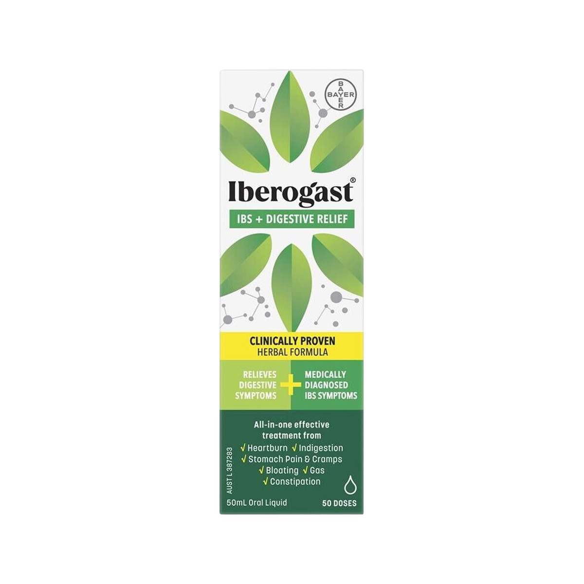 Iberogast® IBS + Digestive Relief is a clinically proven, all-in-one herbal solution to effectively relieve 6 digestive symptoms. Iberogast® IBS + Digestive Relief is an effective treatment for medically diagnosed IBS and a range of digestive symptoms such as heartburn, stomach pain and cramps, indigestion, bloating and gas, constipation, diarrhoea and nausea so you can feel good on the inside.