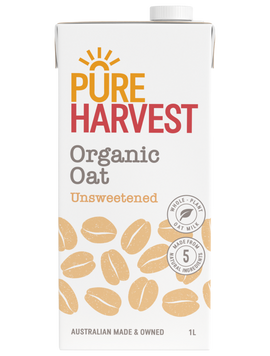 Add to Wish list Add to Cart Quick view Pure Harvest Pureharvest - Organic Oat Milk (Unsweetened) 1L $2.95 PureHarvest Organic Oat milk was the first oat milk introduced to the Australian market back in 1995. For over 25 years we have been producing a creamy, nutritious oat milk using whole organic oats...